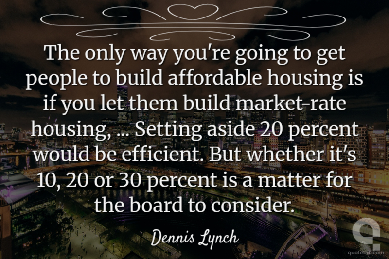 Making even 20 percent of new housing affordable doesn't seem to be enough for everyone who needs it. They'll just end up building more and more until there is nothing left to build on. Kevin Davis