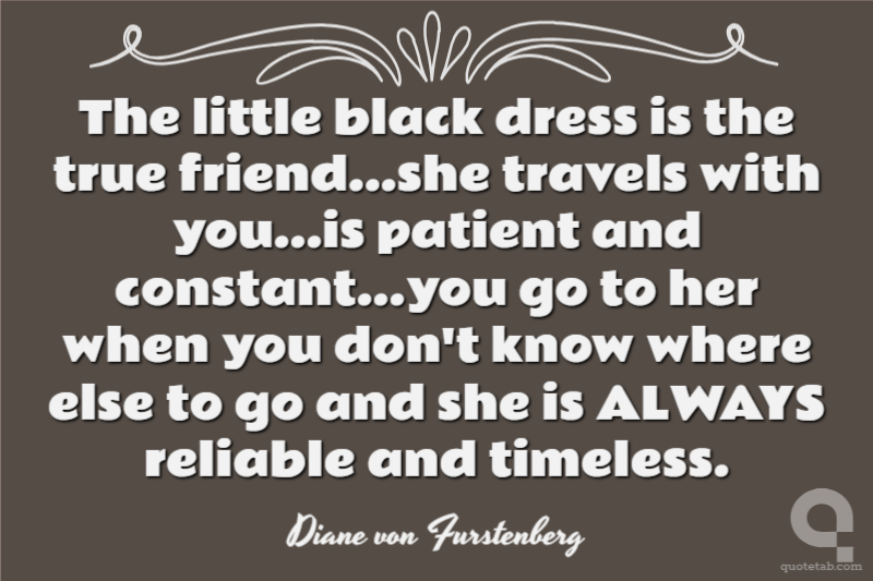 The little black dress is the true friend...she travels with you...is patient and constant...you go to her when you don't know where else to go and she is ALWAYS reliable and timeless. Diane von Furstenberg