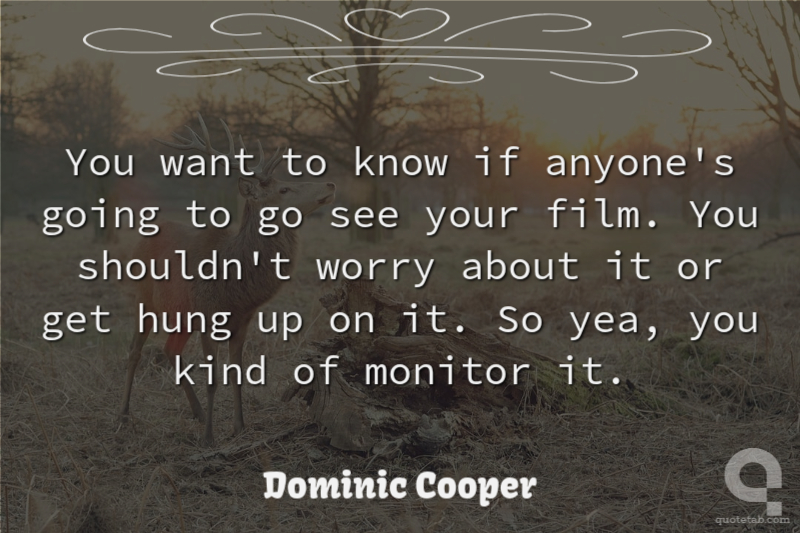You want to know if anyone's going to go see your film. You shouldn't worry about it or get hung up on it. So yea, you kind of monitor it. Dominic Cooper