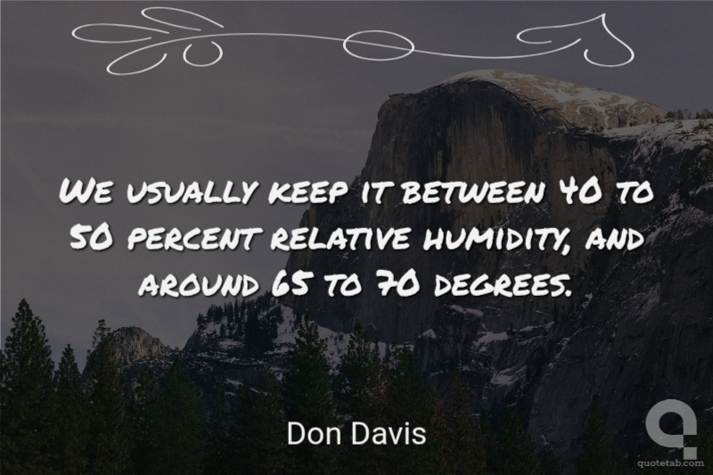 We usually keep it between 40 to 50 percent relative humidity, and around 65 to 70 degrees. Don Davis