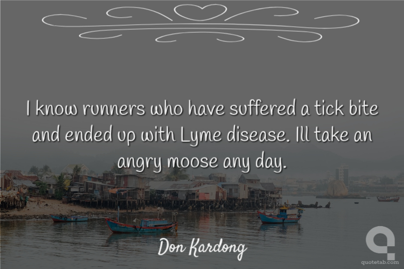 I know runners who have suffered a tick bite and ended up with Lyme disease. Ill take an angry moose any day. Don Kardong