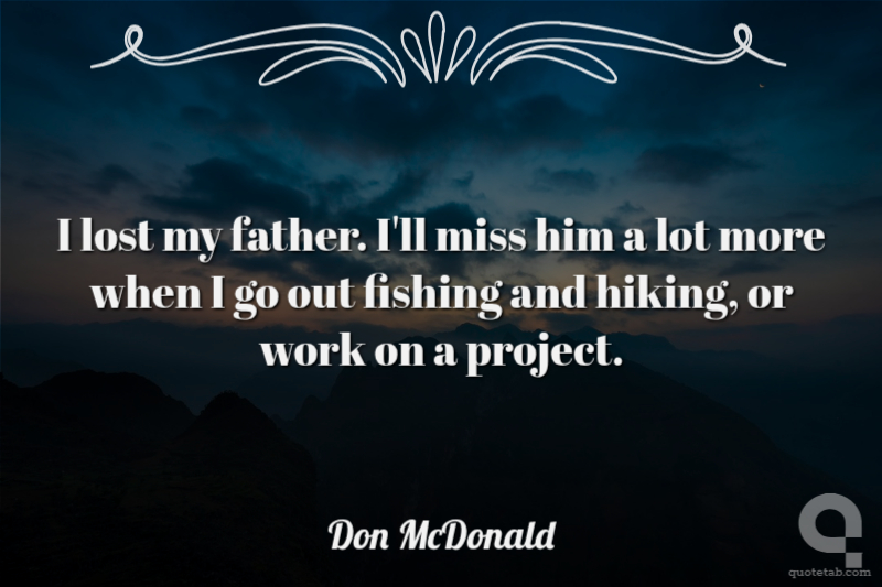 I lost my father. I'll miss him a lot more when I go out fishing and hiking, or work on a project. Don McDonald