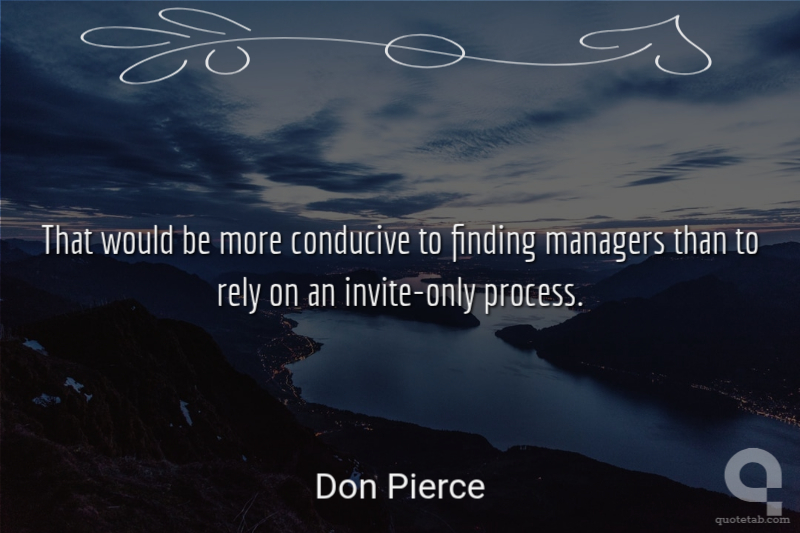 That would be more conducive to finding managers than to rely on an invite-only process. Don Pierce