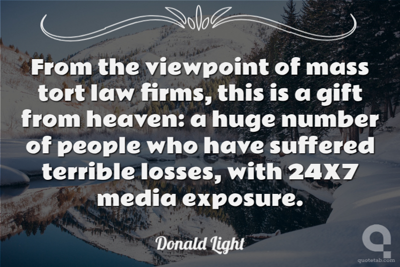 From the viewpoint of mass tort law firms, this is a gift from heaven: a huge number of people who have suffered terrible losses, with 24X7 media exposure. Donald Light