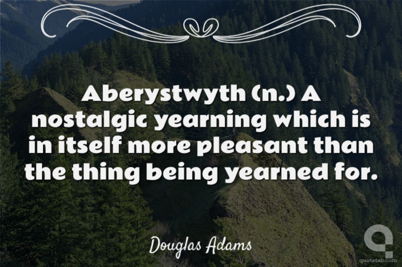 Aberystwyth (n.) A nostalgic yearning which is in itself more pleasant than the thing being yearned for. Douglas Adams