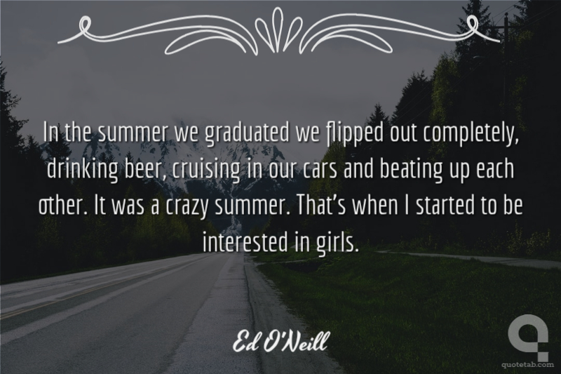 In the summer we graduated we flipped out completely, drinking beer, cruising in our cars and beating up each other. It was a crazy summer. That's when I started to be interested in girls. Ed O'Neill