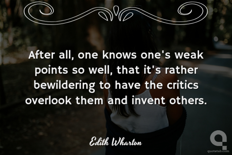 After all, one knows one's weak points so well, that it's rather bewildering to have the critics overlook them and invent others. Edith Wharton