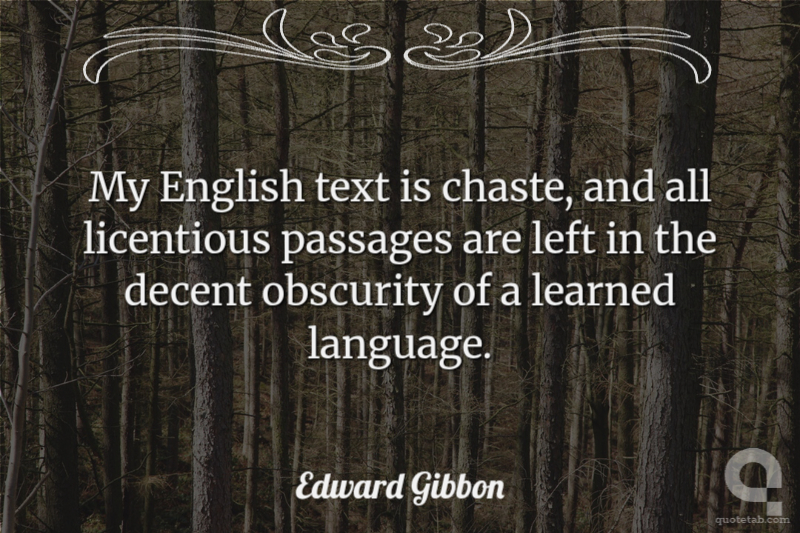 My English text is chaste, and all licentious passages are left in the decent obscurity of a learned language. Edward Gibbon