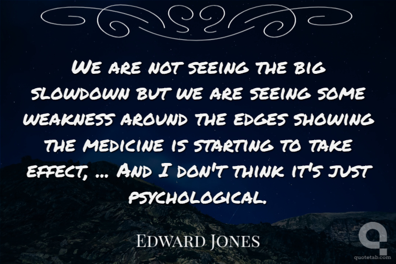We are not seeing the big slowdown but we are seeing some weakness around the edges showing the medicine is starting to take effect, ... And I don't think it's just psychological. Edward Jones