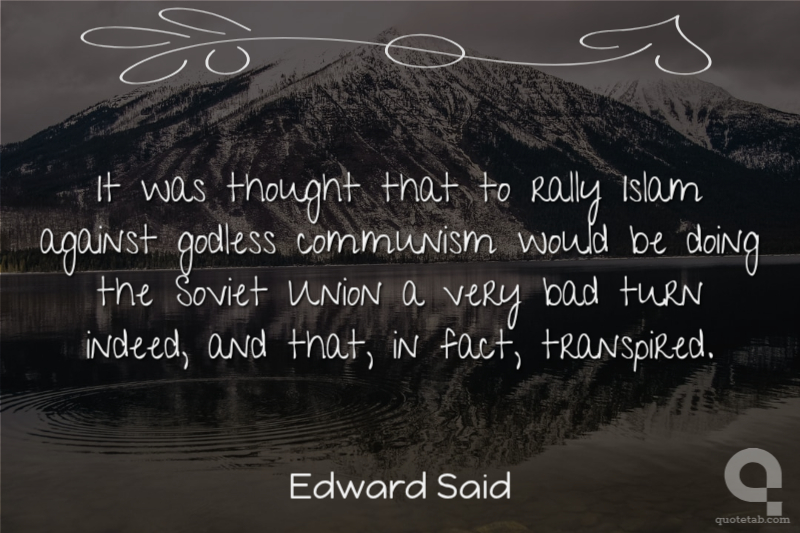 It was thought that to rally Islam against godless communism would be doing the Soviet Union a very bad turn indeed, and that, in fact, transpired. Edward Said