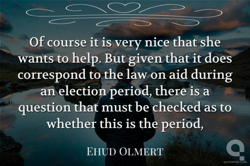 Of course it is very nice that she wants to help. But given that it does correspond to the law on aid during an election period, there is a question that must be checked as to whether this is the period, Ehud Olmert