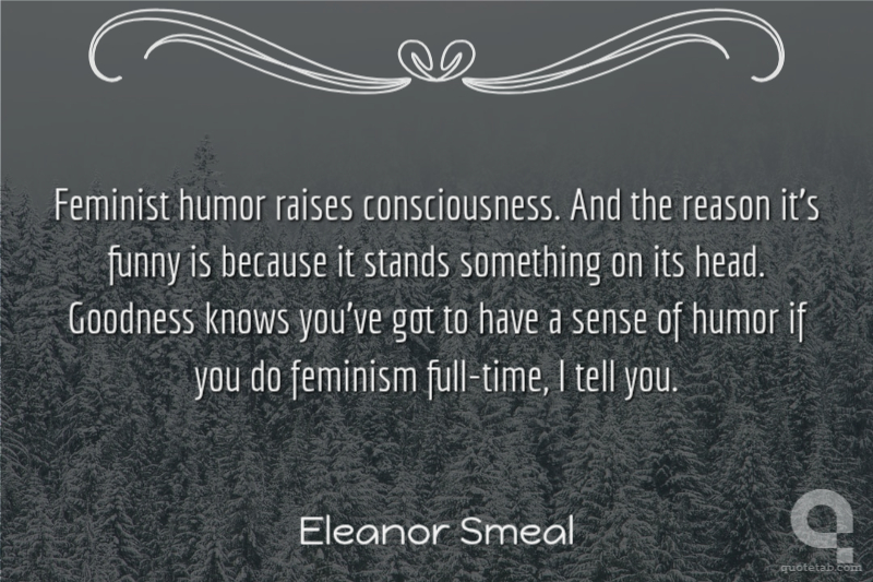 Feminist humor raises consciousness. And the reason it's funny is because it stands something on its head. Goodness knows you've got to have a sense of humor if you do feminism full-time, I tell you. Eleanor Smeal