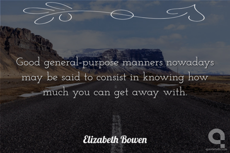 Good general-purpose manners nowadays may be said to consist in knowing how much you can get away with. Elizabeth Bowen