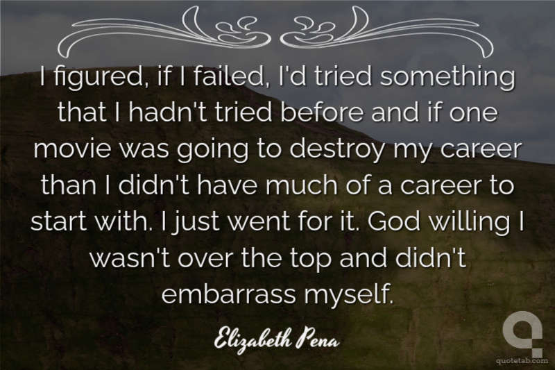 I figured, if I failed, I'd tried something that I hadn't tried before and if one movie was going to destroy my career than I didn't have much of a career to start with. I just went for it. God willing I wasn't over the top and didn't embarrass myself. Elizabeth Pena