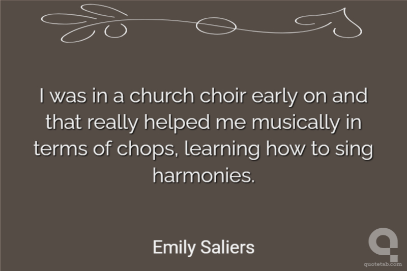 I was in a church choir early on and that really helped me musically in terms of chops, learning how to sing harmonies. Emily Saliers