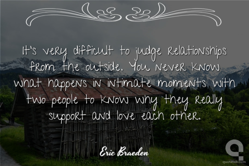 It's very difficult to judge relationships from the outside. You never know what happens in intimate moments with two people to know why they really support and love each other. Eric Braeden