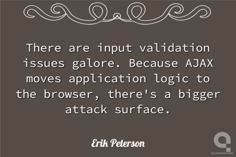 There are input validation issues galore. Because AJAX moves application logic to the browser, there's a bigger attack surface. Erik Peterson