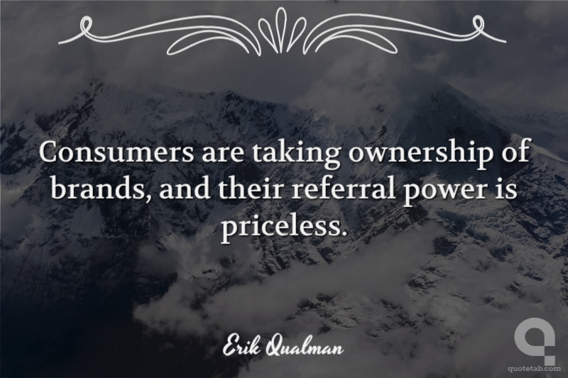 Consumers are taking ownership of brands, and their referral power is priceless. Erik Qualman