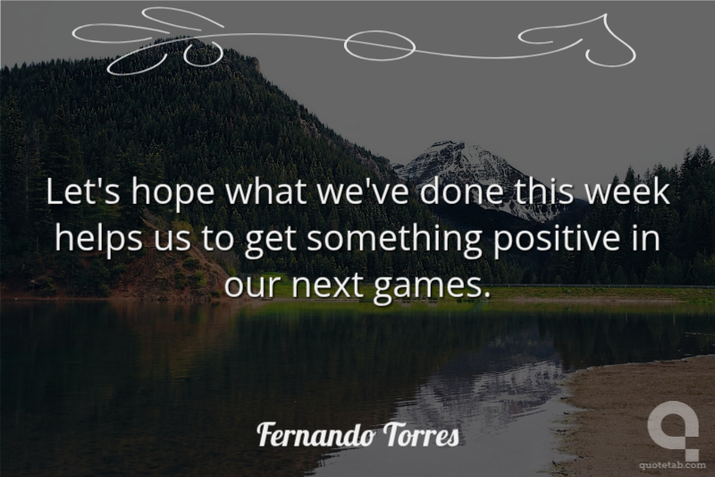 Let's hope what we've done this week helps us to get something positive in our next games. Fernando Torres