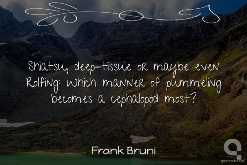 Shiatsu, deep-tissue or maybe even Rolfing: Which manner of pummeling becomes a cephalopod most? Frank Bruni