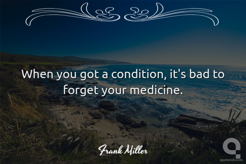 When you got a condition, it's bad to forget your medicine. Frank Miller