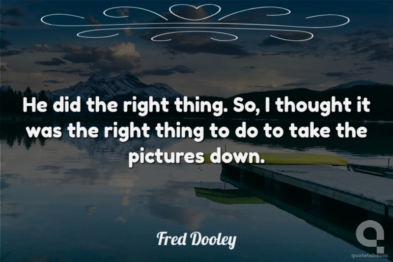 He did the right thing. So, I thought it was the right thing to do to take the pictures down. Fred Dooley