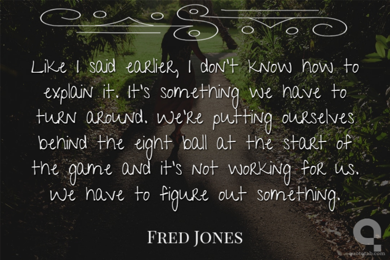 Like I said earlier, I don't know how to explain it. It's something we have to turn around. We're putting ourselves behind the eight ball at the start of the game and it's not working for us. We have to figure out something. Fred Jones