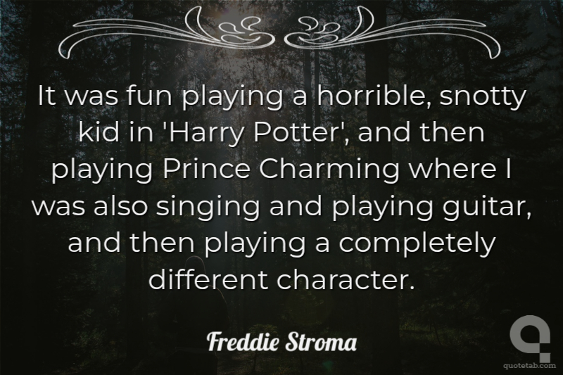 It was fun playing a horrible, snotty kid in 'Harry Potter', and then playing Prince Charming where I was also singing and playing guitar, and then playing a completely different character. Freddie Stroma