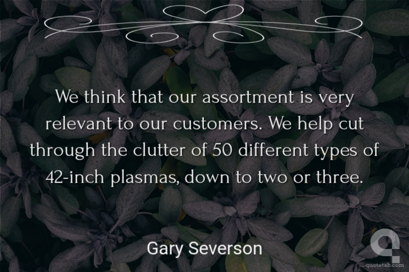 We think that our assortment is very relevant to our customers. We help cut through the clutter of 50 different types of 42-inch plasmas, down to two or three. Gary Severson