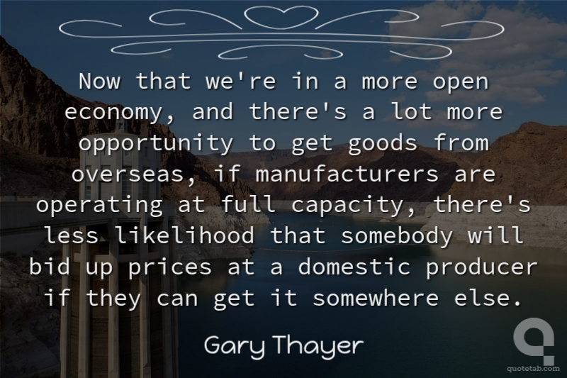 Now that we're in a more open economy, and there's a lot more opportunity to get goods from overseas, if manufacturers are operating at full capacity, there's less likelihood that somebody will bid up prices at a domestic producer if they can get it somewhere else. Gary Thayer