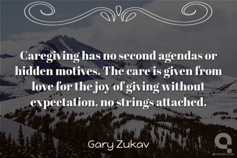 Caregiving has no second agendas or hidden motives. The care is given from love for the joy of giving without expectation, no strings attached. Gary Zukav