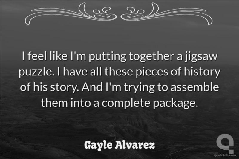 I feel like I'm putting together a jigsaw puzzle. I have all these pieces of history of his story. And I'm trying to assemble them into a complete package. Gayle Alvarez