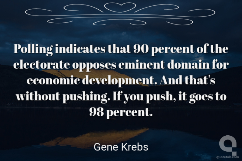 Polling indicates that 90 percent of the electorate opposes eminent domain for economic development. And that's without pushing. If you push, it goes to 98 percent. Gene Krebs