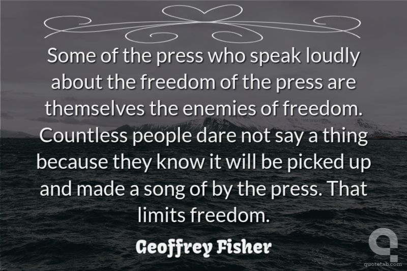 Some of the press who speak loudly about the freedom of the press are themselves the enemies of freedom. Countless people dare not say a thing because they know it will be picked up and made a song of by the press. That limits freedom. Geoffrey Fisher