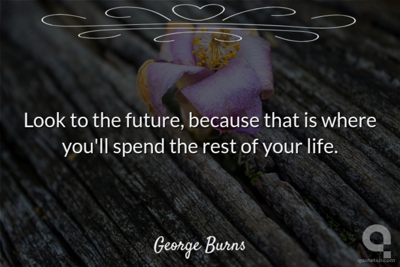 Look to the future, because that is where you'll spend the rest of your life. George Burns