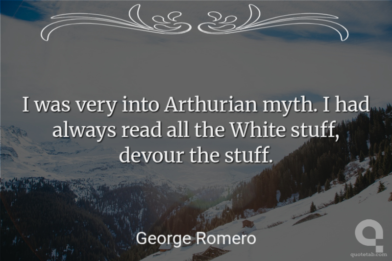 I was very into Arthurian myth. I had always read all the White stuff, devour the stuff. George Romero