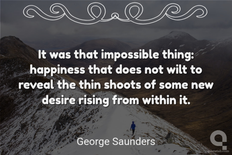 It was that impossible thing: happiness that does not wilt to reveal the thin shoots of some new desire rising from within it. George Saunders