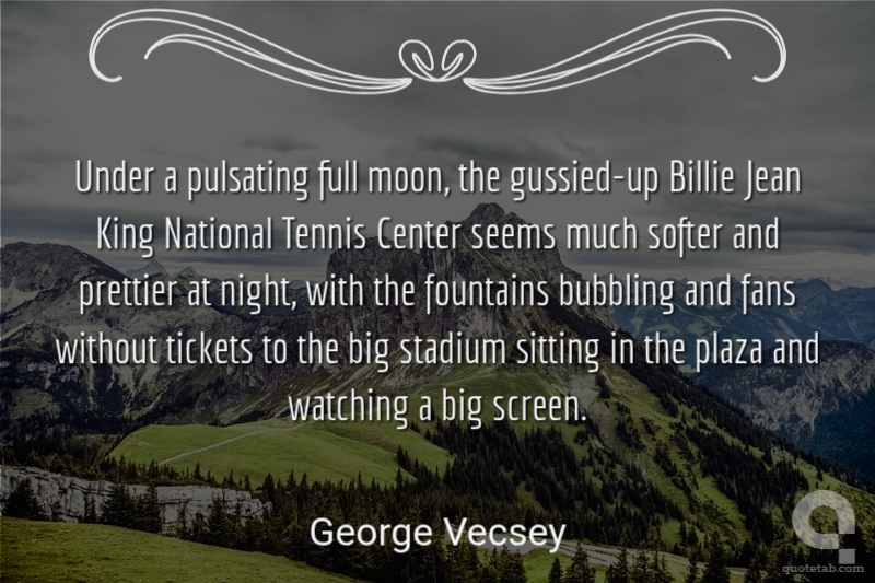 Under a pulsating full moon, the gussied-up Billie Jean King National Tennis Center seems much softer and prettier at night, with the fountains bubbling and fans without tickets to the big stadium sitting in the plaza and watching a big screen. George Vecsey