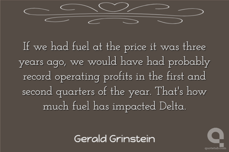 If we had fuel at the price it was three years ago, we would have had probably record operating profits in the first and second quarters of the year. That's how much fuel has impacted Delta. Gerald Grinstein