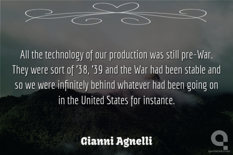 All the technology of our production was still pre-War. They were sort of '38, '39 and the War had been stable and so we were infinitely behind whatever had been going on in the United States for instance. Gianni Agnelli