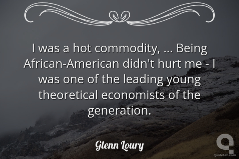 I was a hot commodity, ... Being African-American didn't hurt me - I was one of the leading young theoretical economists of the generation. Glenn Loury