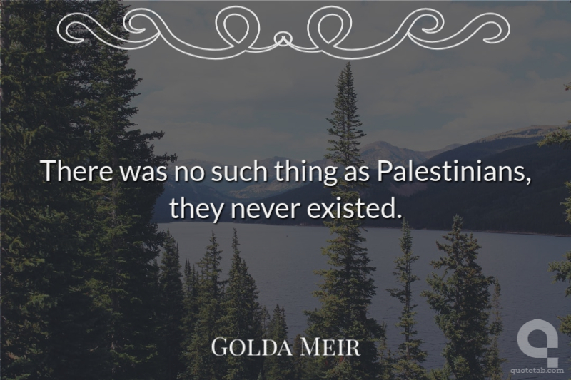 There was no such thing as Palestinians, they never existed. Golda Meir