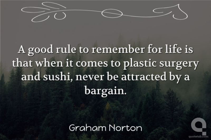 A good rule to remember for life is that when it comes to plastic surgery and sushi, never be attracted by a bargain. Graham Norton