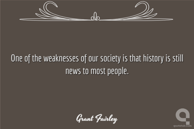 One of the weaknesses of our society is that history is still news to most people. Grant Fairley