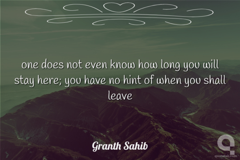 one does not even know how long you will stay here; you have no hint of when you shall leave Granth Sahib