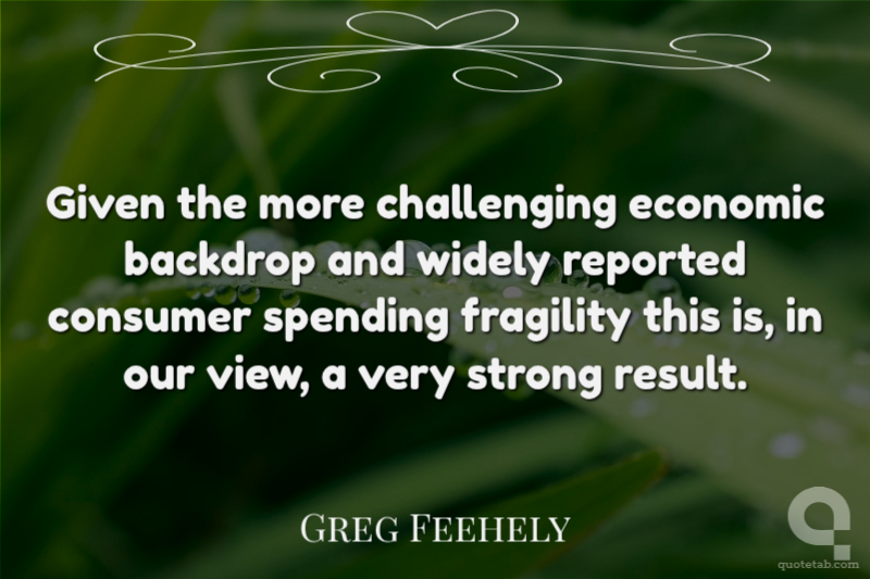 Given the more challenging economic backdrop and widely reported consumer spending fragility this is, in our view, a very strong result. Greg Feehely