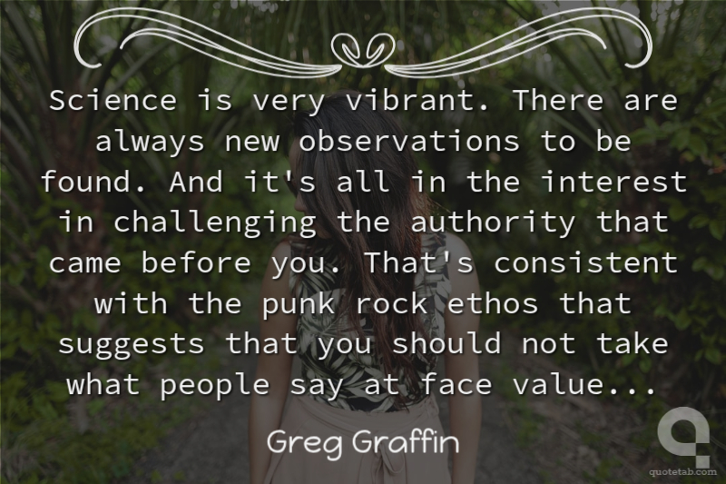 Science is very vibrant. There are always new observations to be found. And it's all in the interest in challenging the authority that came before you. That's consistent with the punk rock ethos that suggests that you should not take what people say at face value... Greg Graffin