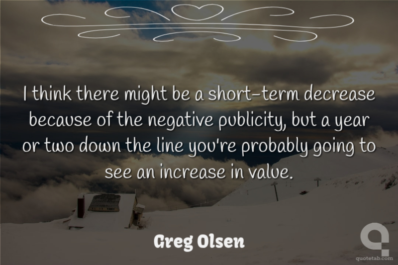 I think there might be a short-term decrease because of the negative publicity, but a year or two down the line you're probably going to see an increase in value. Greg Olsen