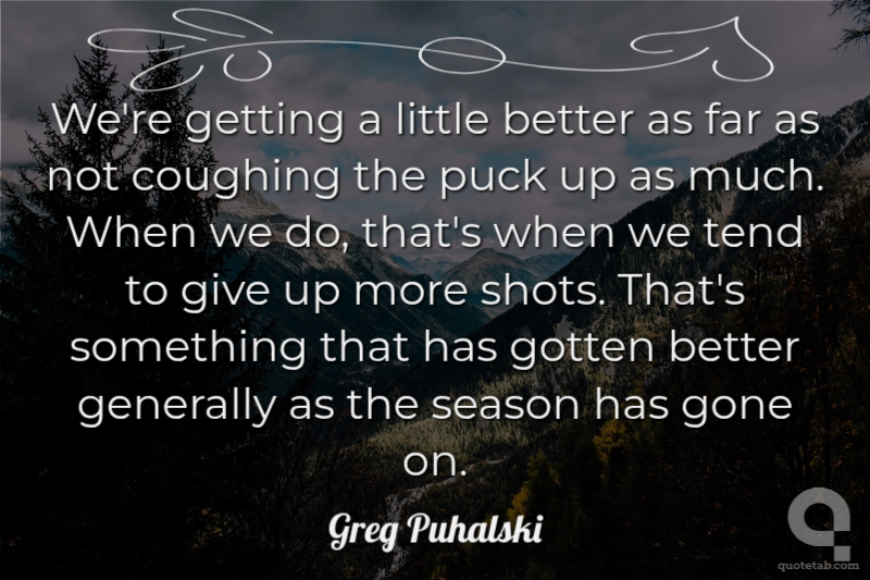 We're getting a little better as far as not coughing the puck up as much. When we do, that's when we tend to give up more shots. That's something that has gotten better generally as the season has gone on. Greg Puhalski