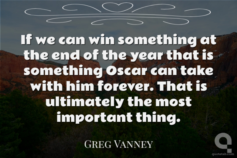 If we can win something at the end of the year that is something Oscar can take with him forever. That is ultimately the most important thing. Greg Vanney